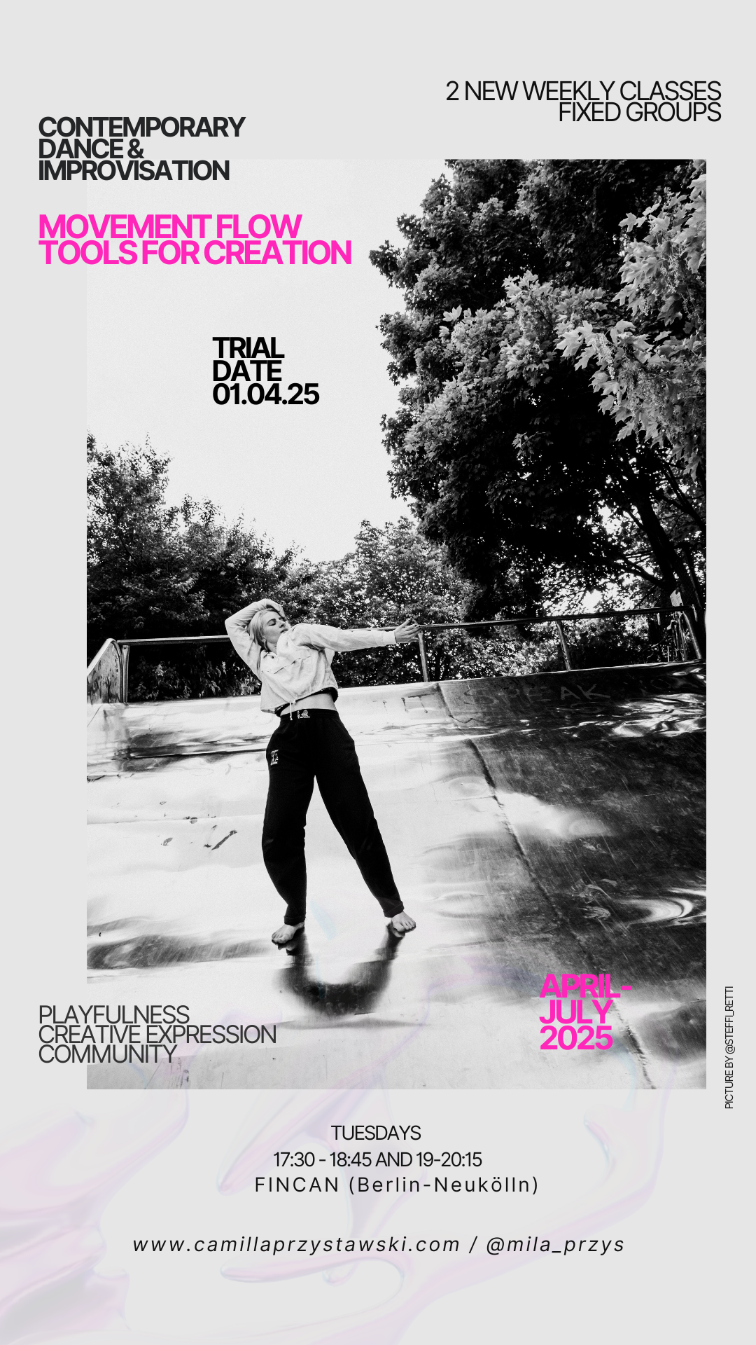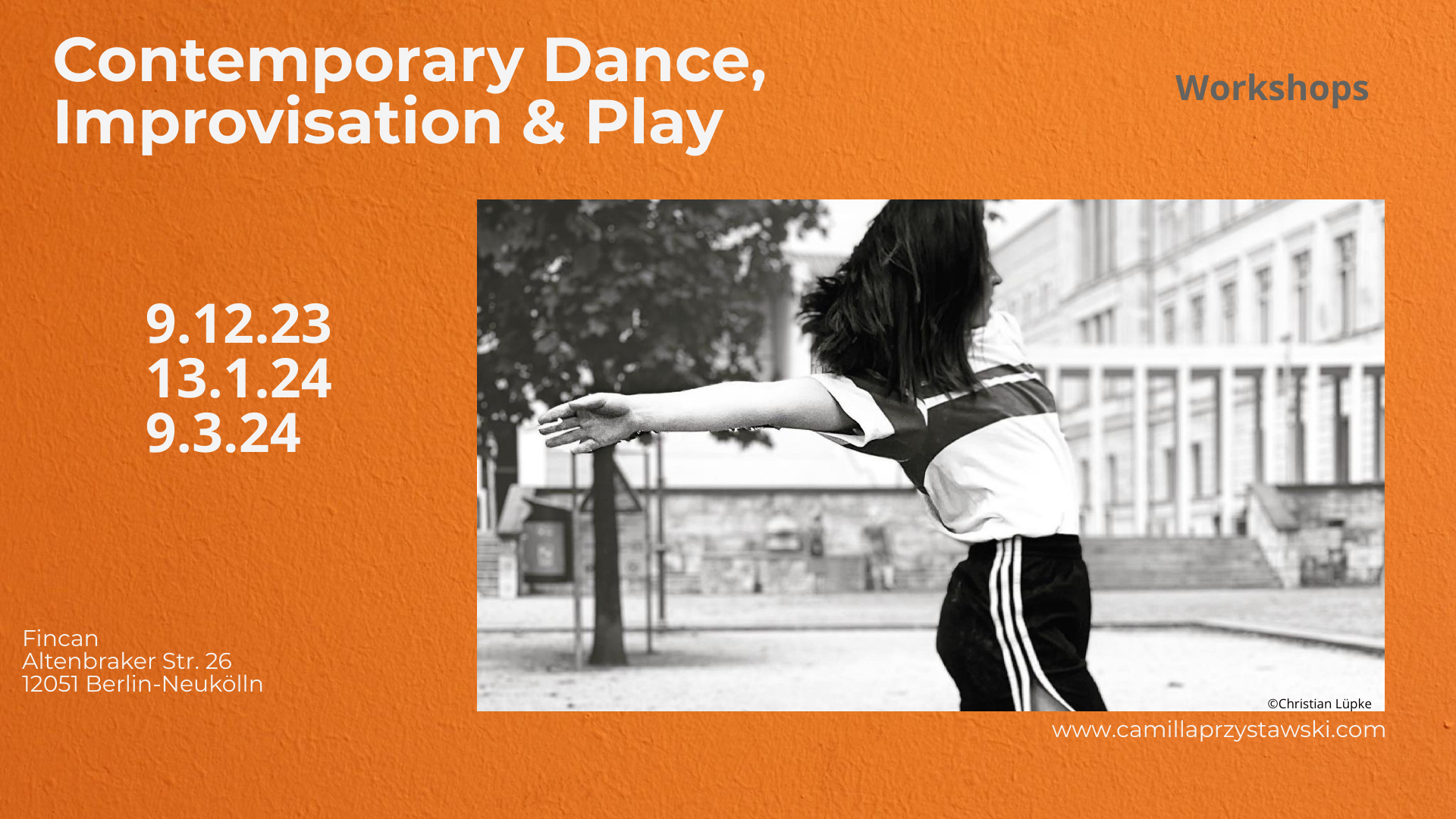 Camilla Przystawski is a freelance contemporary dancer, choreographer and dance teacher based in Berlin. She is in constant exchange and close cooperation with other artists and realizes international and interdisciplinary collaborations - workshops, artistic creations and international artistic exchanges.